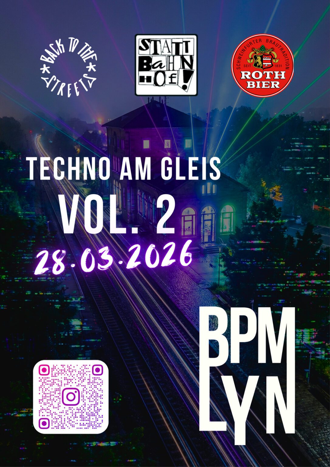 Street culture (Back to the Streets), techno (BPM-LYN), Rothbier from Schweinfurt — hosted inside the cultural venue Stadtbahnhof Schweinfurt.