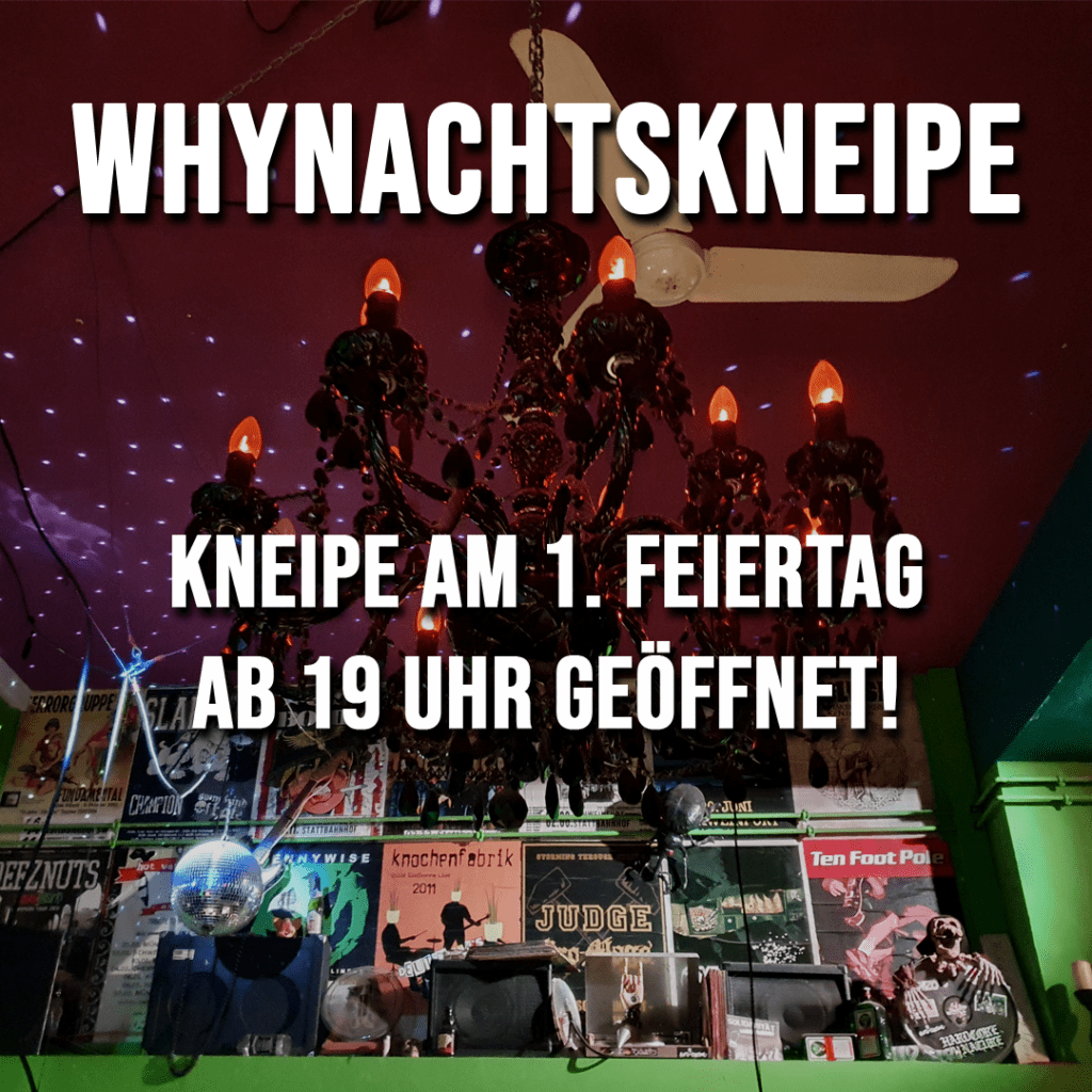 Wem es bei der WHYnachtsdisco zu voll ist, sollte kommt einfach in die WHYnachtskneipe kommen! Da wird man an diesem Tag traditionell auch das eine oder andere bekannte Gesicht treffen.
